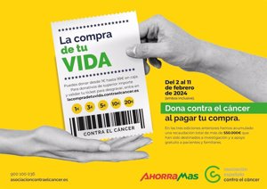 La cadena de supermercados Ahorramas se sumará por cuarto año consecutivo a la campaña ‘La Compra de tu Vida’ de la Asociación Española contra el Cáncer (AECC) para recaudar fondos destinados al apoyo de la investigación contra esta grupo de enfermedades y ofrecer servicios gratuitos de apoyo a pacientes y familiares.