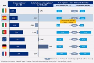 Para Claudio Lago de Lanzós, Director General en España y Portugal de Oliver Wyman, «en un contexto donde se anticipa una bajada de los tipos de interés en los próximos meses, pero manteniéndose en entornos positivos, los depósitos emergen como un factor clave para la banca. En este escenario, la gestión inteligente y eficiente de los depósitos se presenta como un diferenciador crucial en los resultados financieros de los bancos».