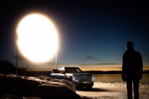 La instalación luminosa se instaló en Rampton, un camping en un fiordo a 35 kilómetros al suroeste de Oslo. La pintoresca playa, con una pequeña isla frente a ella, era un lugar ideal para imitar un amanecer a lo largo de la costa. Una vez completamente iluminado, el sol temporal se podía ver desde varios kilómetros de distancia. El EV9 pudo conducir desde Oslo a Rampton, encender la luz durante veinticuatro horas y luego regresar a Oslo sin ansiedad por el alcance. Aquí se puede ver un documental sobre la instalación de iluminación.