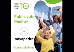 La startup española Novapedra –con su nuevo material cerámico fabricado a partir de residuos orgánicos– se ha convertido en la primera finalista de la X edición del premio ‘Green Alley Award’ al lograr el apoyo mayoritario del público durante las votaciones online abiertas durante el último mes.