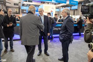 El rector de UIC Barcelona, Alfonso Méndiz, ha saludado hoy en el estand de la Universidad al conseller de Recerca i Universitats, Joaquim Nadal i Farreras, durante el acto inaugural, con quien ha intercambiado palabras y destacado el alto índice de inserción laboral de la Universidad: «Estamos muy orgullosos de que UIC Barcelona haya alcanzado un alto índice de inserción laboral, ya que demuestra que nuestros graduados tienen una buena entrada al mercado laboral», ha comentado el rector con el conseller.