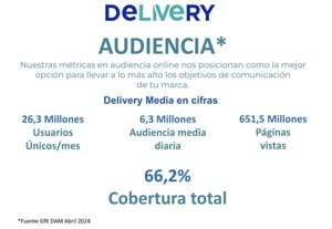 Los datos recién publicados por GfK DAM relativos al mes de abril confirman a Delivery como la opción más destacada en términos de audiencia online. Este reconocimiento se basa en métricas que evidencian su posicionamiento como una elección preferente para planificaciones digitales, al agrupar en un único listado, medios de gran relevancia, siempre dentro de un entorno 100% brand safe