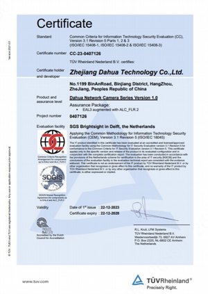 El proceso de certificación implica pruebas exhaustivas y la evaluación del entorno de desarrollo de Dahua, el entorno de producción, la cadena de suministro, la evaluación de vulnerabilidades, la seguridad del personal, así como muchos otros aspectos. La evaluación de la seguridad corre a cargo de SGS Brightsight, un laboratorio de evaluación de la seguridad de renombre mundial con sede en los Países Bajos y aprobado por el Esquema Holandés de Certificación en el Área de la Seguridad Informática (NSCIB).