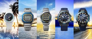 Los nuevos relojes de cinco marcas de relojes Casio inspirados en el concepto «Cielo y Mar» conmemoran los 50 años de los relojes Casio. Cada uno de los nuevos relojes se basa en un diseño popular de una de las principales marcas de Casio, y todos comparten un tema de diseño común con colores acentuados en azul y dorado que evocan escenas del cielo y el mar bañados por una luz brillante. Esta es la primera línea que presenta relojes de cinco marcas Casio diferentes con un tema común.