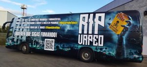 -El autobús reivindicativo que ANESVAP, la asociación de vapeadores de España, ha puesto en marcha recuerda que «el vapeo salva vidas»