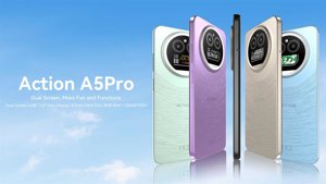 La forma de rombo de la pantalla secundaria sugiere energía joven, deportiva e inagotable a unas bandas de precios flexibles y cómodas para cualquier usuario. Action A5Pro está disponible en cinco colores vivos y juveniles, con un exclusivo diseño de estrellas en la cubierta trasera que añade agarre y un toque de romanticismo celestial.